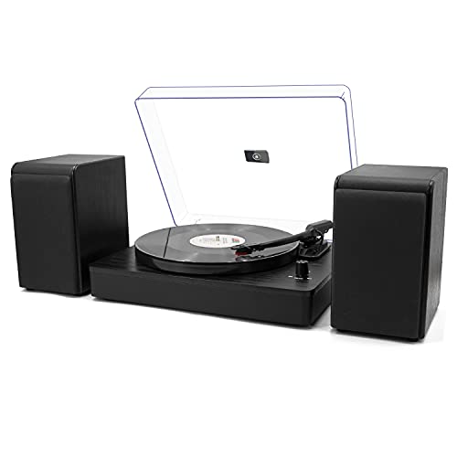 - Tocadiscos LP versátil: salida RCA para conectar con altavoz externo, conector de auriculares para escuchar de forma privada. La base giratoria está equipada con un resorte para proporcionar absorción de impactos y mejorar la calidad del sonido. La cubierta antipolvo fácilmente extraíble protege tus discos de vinilo de daños.
