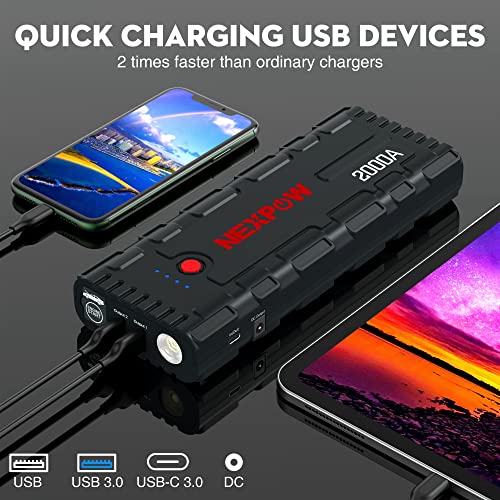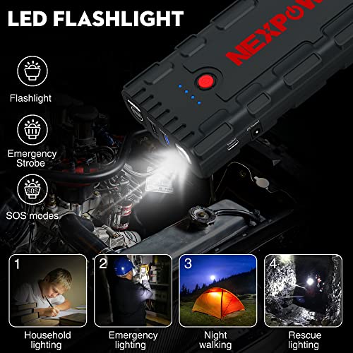 - Tecnología de seguridad mejorada: los arrancadores portátiles de batería de coche de NEXPOW tienen cables de salto inteligentes integrados 8 protecciones mejoradas, especialmente a prueba de chispas, protección de polaridad inversa, protección de alta temperatura, protección de sobrecarga. La caja de salto de batería del coche/cable de salto intermitente y el pitido te dirán operaciones equivocadas.