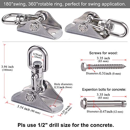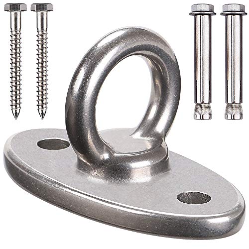 Detalles: Descripción Soporte de montaje de techo de pared resistente Besthouse para entrenadores de correa de suspensión, anillos de gimnasia olímpica, columpios aéreos, kits de anclaje de cuerda de batalla, columpios de terapia, columpios de autismo, hamacas, bandas de resistencia y otros entrenamientos cruzados, yoga y peso corporal. Para ser utilizado en casa o en el gimnasio, solo tarda un par de minutos en instalarse y te dará entrenamientos impresionantes durante años. Fácil de instalar: Instalación en madera. ①Esto requiere que primero comprendas cómo utilizar los tornillos para madera. ② Pre-taladra dos agujeros en la viga de madera, se recomienda utilizar una broca de menos de 0,5 cm. ③Pasa el tornillo a través del agujero en la base del colgador oscilante, y utiliza una llave o taladro eléctrico para apretar el tornillo. Instalación en concreto ①Esto requiere que primero comprendas cómo utilizar el tornillo de expansión. ②Taladra dos agujeros en el techo y luego utiliza pernos de expansión para fijar el colgador giratorio en el techo. Conéctate a artículos como hamacas, columpios o sacos de arena que necesitas colgar Lista de embalaje 1 soporte de montaje en techo de pared. 2 pernos de expansión. 2 tornillos para madera. Materiales de alta calidad 💎Utiliza acero inoxidable SUS 304, calidad más sólida, resistencia a la corrosión. Sin ningún estiramiento apreciable o efectos nocivos para el acabado de la intemperie. ATENCIÓN ❗Su peso máximo es de 2800 libras. Asegúrate de que la superficie sea lo suficientemente fuerte como para soportar el peso y las fuerzas involucradas que estás montando. Este artículo es singular, para un columpio de porche u otro producto similar, asegúrate de pedir dos colgadores Para mayor seguridad, comprueba siempre todas las piezas montadas o soldadas bien para su uso. 💝💝💝💝Si no estás satisfecho con cualquier razón, devuelve tu pedido durante 30 días para un reembolso completo. Mantenerte satisfecho y proporcionarte el servicio al cliente más amigable es nuestro lente número uno. Mejores productos y lo mejor en satisfacción del cliente.