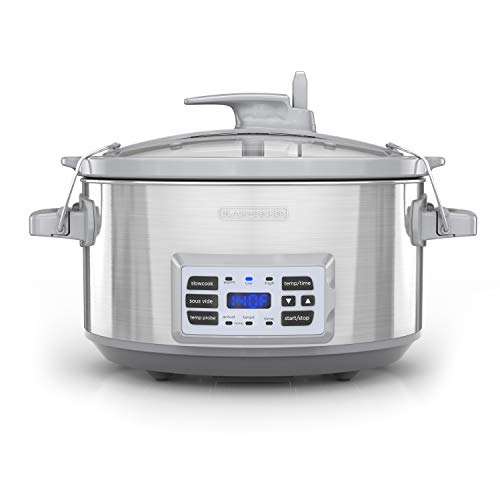 Detalles: Descripción La olla de cocción lenta digital BLACK+DECKER de 7 cuartos con sonda de temperatura + Precision Sous-Vide te da tres formas de cocinar. 1) La cocción lenta clásica es simple en la vajilla de gres de 7 cuartos de galón. Simplemente agrega los ingredientes y deja que el bajo calor constante se ponga a trabajar en asados sopas chilis y mucho más. 2) Utiliza la sonda de temperatura para lograr resultados ideales en una variedad de proteínas. Simplemente establece la temperatura deseada, inserta la sonda en la carne y la olla de cocción lenta hará el resto. 3) Para resultados de calidad de restaurante sin la molestia o las conjeturas, utiliza la función Sous-Vide. Simplemente organiza porciones individuales de comida dentro de las bolsas resellables, establece el tiempo y la temperatura en función de lo que estás cocinando y el nivel de cocción que prefieras. y luego insertar la temperatura temperatura de la sonda en el agua. El método sous-vide ayuda a prevenir la sobrecocción calentando el agua que rodea la comida llevándola a la temperatura interna deseada. Cuando cocinar lentamente, tres ajustes de calor te dan opciones para encontrar la mejor temperatura para tu horario: baja durante 8-9 horas de cocción. Alto durante 3-4 horas y caliente para mantener los alimentos a la temperatura ideal de porción. Además, la limpieza es fácil gracias a la olla de gres apta para lavaplatos y el vidrio templado tapa tapa