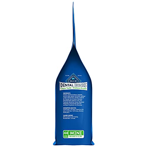 Detalles: Descripción BLUE Dental Bones for small dogs provides them with natural oral health care in a tasty, longer lasting and highly digestible dog chew bone. Wholesome ingredients, an ideal shape, enhanced flavor and