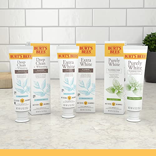 Detalles: Descripción Nombre de estilo:Fluoride-Free This Burt's Bees fluoride free toothpaste is crafted to leave your breath fresh, and your mouth feeling clean. Experience the refreshment of Zen Peppermint toothpaste which will leave you clean and fresh! This toothpaste is crafted to help remove surface stains to help you achieve a beautiful smile! Not tested on animals and made without: Sodium Lauryl Sulfate (SLS free), Triclosan & Parabens, Artificial Flavors & Sweeteners, Preservatives & Blue, Red, Yellow Dyes and Plastic Microbeads. Tubes and Cartons are 100% recyclable (see BurtsBeesOralCare.com for more details).