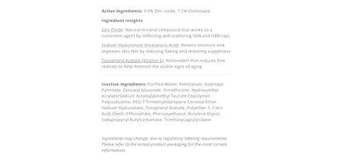 Detalles: Serious UV protection and superior hydration join forces in this sheer facial sunscreen. EltaMD UV Daily has hyaluronic acid to boost moisture retention and diminish fine lines. This lightweight moisturizer with UV protection can be worn alone or under makeup. Choose from tinted and untinted formulas for use every day.