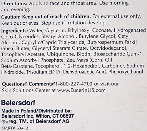 Detalles: Descripción Una manera suave de reducir visiblemente el aspecto de líneas finas y arrugas en tan solo 5 semanas., Muchos tratamientos anti-arrugas hidratantes se recomiendan para pieles secas y sensibles porque contienen ingredientes que pueden irritar. Eucerin Q10 Anti-Arrugas Crema Piel Sensible es una crema hidratante hecha para pieles secas y sensibles. Está especialmente formulado para ser no irritante y para reducir suavemente el aspecto de las arrugas y los signos del envejecimiento.