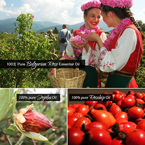 Tamaño:1oz Super Aceite Esencial de Rosa de Bulgaria: hidratante, anti-arrugas, nutrir, después de sol piel Repair, anti-edad. Mejor aceites para darle Shining Skin, fresca y juvenil. Con su maravillosa fragancia es uno de los más buscados aceite esencial para uso en perfumería. Con 100% puro y natural escaramujo y aceite de jojoba