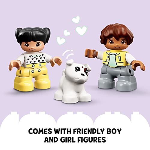 • Incluye 10 bricks con números, además de figuras LEGO DUPLO de un niño, una niña y un perro.