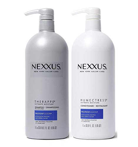 Detalles: Descripción NEXXUS Champú y acondicionador Set cada botella de 33.8 floz. El champú Therappe Ultimate Moisture no contiene silicona con Caviar Complex. Humectress Ultimate Moisture Conditioner con complejo de caviar.
