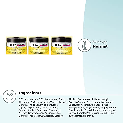 Detalles: Descripción Olay Complete All Day SPF 15 Facial Moisturizer with UVA/UVB protection for normal skin provides 48 hours of hydration. This lightweight antioxidant-rich lotion conditions skin surface with vitamins E, B3 and C to help maintain healthy-looking skin.
