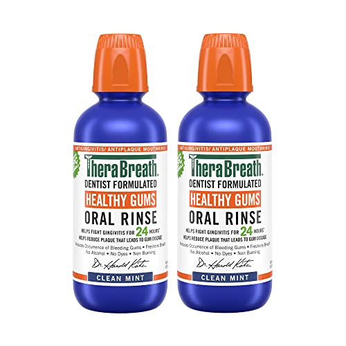 Detalles: Descripción Tamaño:16 Ounce (Pack of 2) It is estimated by the Centers for Disease Control in Atlanta that nearly 50% of the population of the United States lives with gum disease in some form. Whether you’re noticing sensitive teeth, bleeding gums, or have been diagnosed with gingivitis, TheraBreath Healthy Gums Oral Rinse is an effective solution. Healthy Gums Oral Rinse is a safe and effective treatment to fight bacteria and common symptoms of gum disease, which can also be related to diabetes. Dr. Katz’s Healthy Gums Oral Rinse is periodontist-formulated to help people living with gum disease. TheraBreath Healthy Gums Oral Rinse contains cetylpyridinium chloride (CPC), an ingredient approved by the FDA and clinically proven to kill germs linked to gum disease and other periodontal problems, and adds a sweetener, xylitol (but NO saccharin), to neutralize the decay process. CPC attacks the bacteria that lead to gingivitis, which is early stage gum disease that produces red, swollen, and even bleeding gums. It also helps to fight periodontitis, a later stage gum disease. Periodontitis can cause gums to pull away from the teeth, bone loss, and potentially even tooth loss. This 24-hour oral rinse is packed with Dr. Katz’s patented oxygenating compounds and added zinc compounds to fight bad breath germs with no mixing needed. This product is alcohol-free, which reduces irritation and the occurrence of inflamed and sensitive gums, it contains no artificial colors or flavors, and it is certified vegan, kosher, and gluten-free. TheraBreath Healthy Gums 24-hour Oral Rinse formula is also exceptional for treating gum-related problems associated with menopause, pregnancy, and other medical conditions. The non-acidic formula of Healthy Gums Oral Rinse has a gentle Clean Mint flavor without added saccharin. This product is sold as a pack of two 16-ounce bottles. As with all our products, TheraBreath Healthy Gums Oral Rinse is guaranteed to work to your satisfaction or your money back!