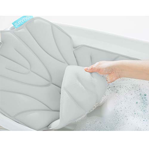 Detalles: Descripción The summer Deluxe bath cushion fits perfectly into any traditional plastic baby bath tub. This support insert provides extra cushion and comfort for your little one during bathtime. The non-slip grips and soft material will keep your little one comfy, cozy, and happy. The Deluxe bath cushion will absorb just enough water to keep your baby warm, while drying quickly afterwards to help prevent mold and mildew build up. Plus, its machine washable!