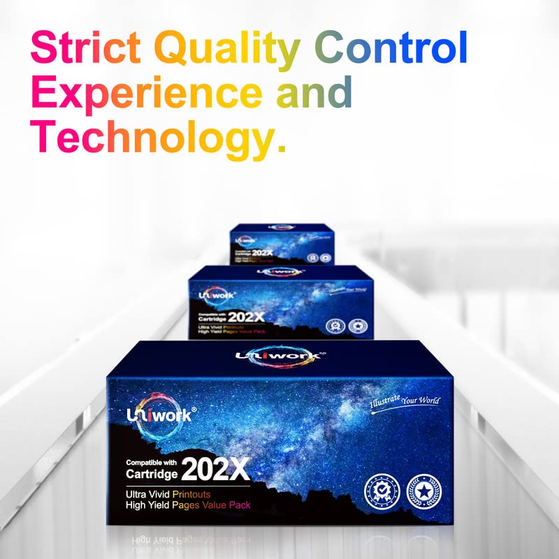 Detalles: Contenido del paquete: Cartucho de tóner compatible Uniwork de repuesto para HP 202X 202A CF500X CF501X CF502X CF503X de alta capacidad: cada cartucho negro tendrá aproximadamente 3200 páginas. Cada cartucho de color producirá aproximadamente 2300 páginas. Compatibilidad de la impresora: LaserJet Pro M254dw Impresora LaserJet Pro M254nw Impresora LaserJet Pro M280nw Impresora LaserJet Pro MFP M281fdw Impresora LaserJet Pro MFP M281cdw Ventajas de PrinterUniwork: Rendimiento excepcional: El polvo de tóner refinado produce una buena resolución y una excelente reproducción de color que resulta en efectos de impresión nítidos y brillantes. Tambor OPC de calidad: OPC de primera clase y certificado con revestimiento más grueso que ofrece páginas de impresión superiores sin problemas y rápidamente. Control de calidad: la prueba de impresión completa antes del envío garantiza una excelente calidad, te mantiene lejos de líneas, manchas y fugas. Embalaje seguro: cada cartucho está empaquetado individualmente en plástico transparente para reducir los daños causados por el transporte.
