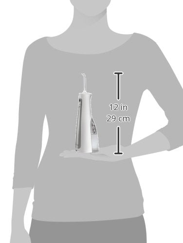 Detalles: Descripción Your teeth have fillings too, so make them feel happy with this Waterpik Oral Health Cordless Freedom Dental Water Flosser. This flosser removes up to 99.9% of plaque, is 50% more effective than string floss, and clinically proven to be 3 times more effective around plaque on braces. It includes 3 water flossing tips, 3 AA batteries, and in-handle pressure control, and there is no charging required. You can use it in the shower and it is perfect for travel and small areas. Teeth are always in style, so snag up this Waterpik Oral Health Cordless Freedom Dental Water Flosser and smile, because it lets your teeth breathe. Do not use if you have an open wound on your tongue or in your mouth